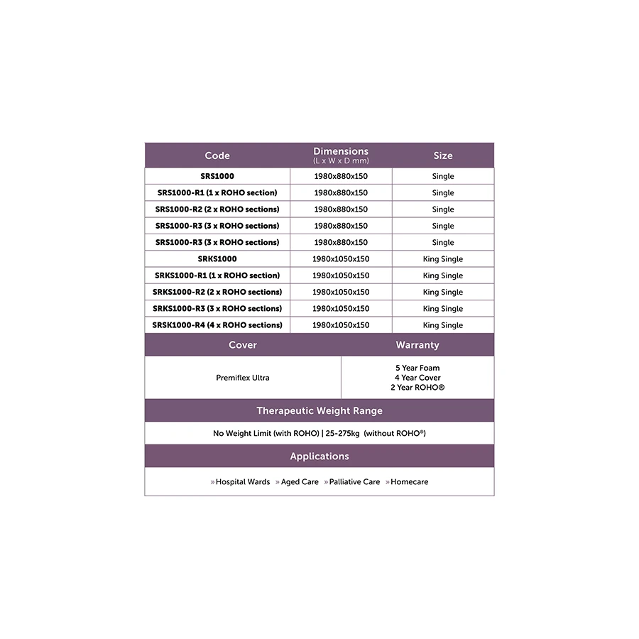 The ROHO® DRY FLOATATION® creates an environment supporting protection and healing with the ORIGINAL non-powered, air-filled, adjustable, zoned, reactive mattress sections. Comprised of soft, interconnected air cells, the DRY FLOATATION mattress sections are designed to conform to the body’s contours, helping soft tissue maintain its shape in order to benefit the healing process. Each section can be independently adjusted, providing a low-pressure environment over multiple contact areas of the body. Available with 1 – 4 ROHO® mattress sections